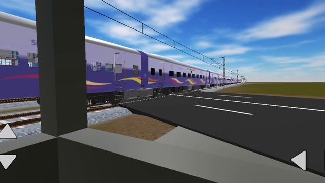 пассажирский поезд проезжает мимо. переезда.