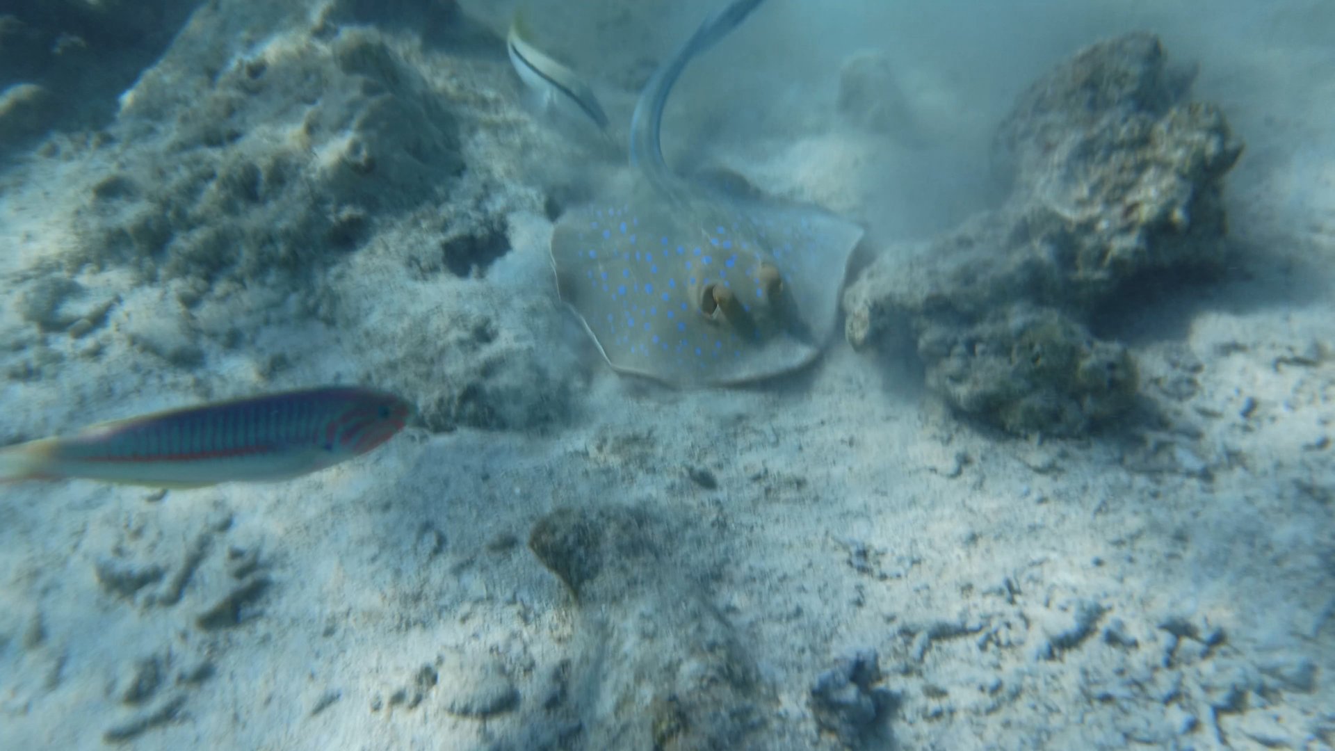 ЕГИПЕТ-2023-ШАРМ. ЧАСТЬ 25 - СКАТ-ХВОСТОКОЛ (МОРСКОЙ КОТ). ПОДВОДНЫЙ МИР бухты РАС УМ ЭЛЬ СИД. КРАСНОЕ МОРЯ. ДЕНЬ ПЯТЫЙ. На отмели в районе пляжа "ФАНАР"