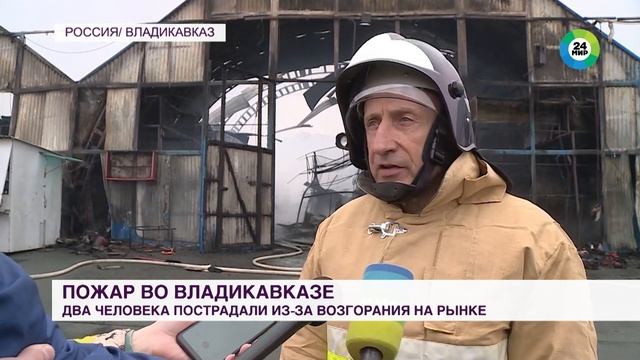 Кадры мощнейшего пожара на вещевом рынке во Владикавказе