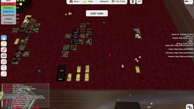 Haunt 17: A Breath of Wind In Betrayal at House on the Hill, each player chooses an explorer to investigate a creepy old house. As we explore the house, we discover new rooms. Each time we enter a new room, we might find something... or something might find us. Explorers change over the course of the game (for better or worse), depending on how they deal with the house's surprises. The house is different each time we build it. At some random point during the game, one explorer triggers a scenario called a haunt. When the haunt is revealed, sometimes 1 explorer becomes traitor bent on defeating his or her former companions. The rest of the explorers become heroes or explorers as I call them struggling to survive. From then on, the game is a fight between the traitor and the heroes - often to the death. This game has 50 haunts, and each one tells a different story. All yours to explore as you live or die in the House on the Hill. Like the game? Please support it by buying it: http://www.amazon.com/Betrayal-At-Hou... Copyright Claims: I do not own the game nor do I have rights over the game. PLEASE READ: Even though tabletop simulator provides free games, I do not support doing this. I did buy the game and have it in real life. My recommendation is to try out the game 1 - 3 times, after, PLEASE BUY THE GAME TO SUPPORT IT. Last thing I need is Wizards Coast to remove it from steam so PLEASE BUY THE GAME, Thank you.