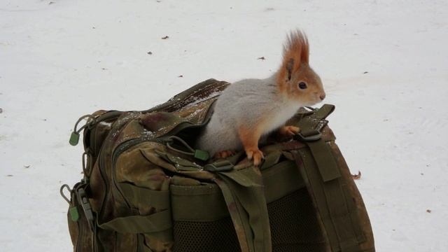 Белки нашли рюкзак с орехами