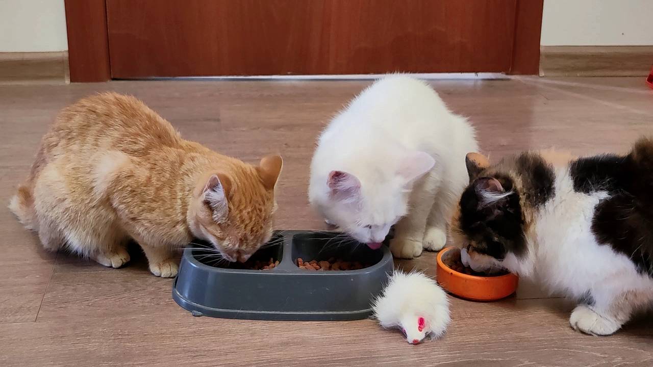 Кошки голодны и просят еды.