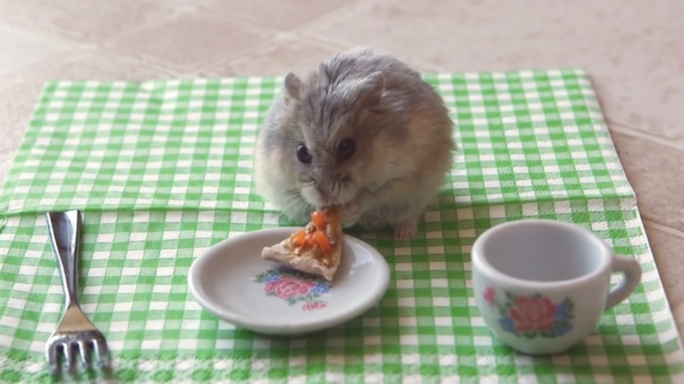Теперь хомяка сводили в пиццерию. Или это не тот хомяк?:)