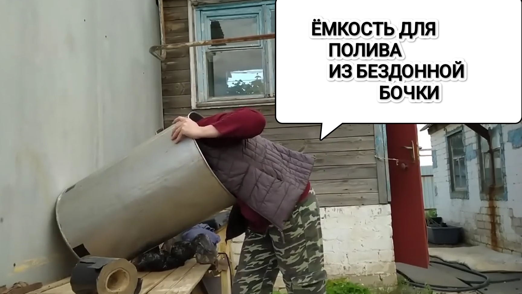 Устранила течь. Бочку без дна превратила в ëмкость для полива. 45 серия