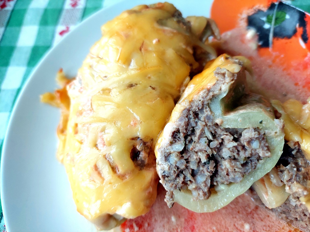 Перец фаршированный, приготовленный в духовке. Не требует гарнира – блюдо самодостаточное.