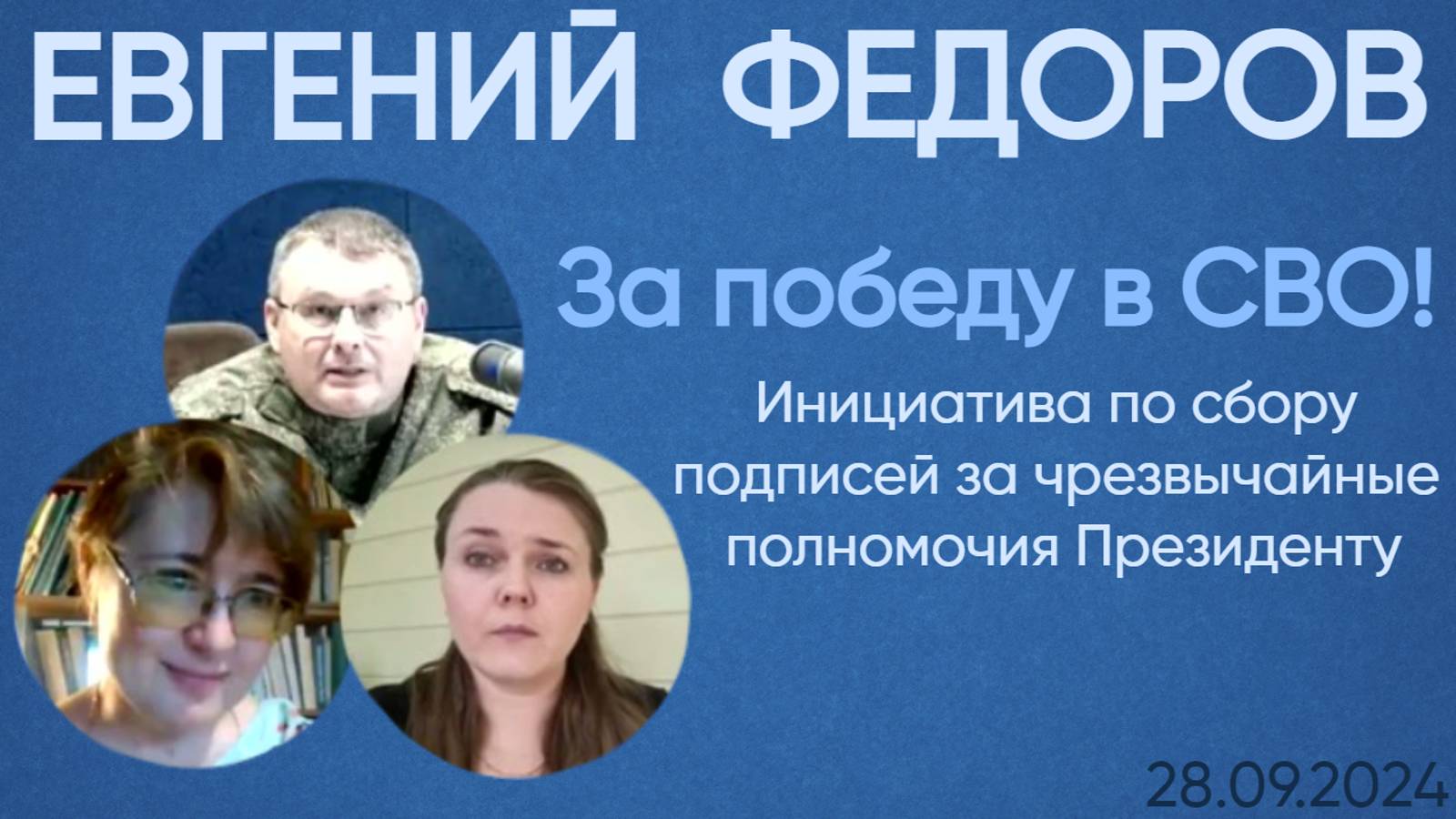 Инициатива по сбору подписей за чрезвычайные полномочия Президенту для скорейшей Победы в СВО на Совете Штабов при Центральном Штабе НОД. Видео с депутатом Госдумы ФС РФ и координатором НОД от 28.09.2024. Подписывайтесь на социальные сети Евгения Федорова: ВКонтакте: https://vk.com/efedorov_club Дзен: https://dzen.ru/fedorovgd Telegram: https://t.me/fedorovgd Одноклассники: https://ok.ru/fedorovyev