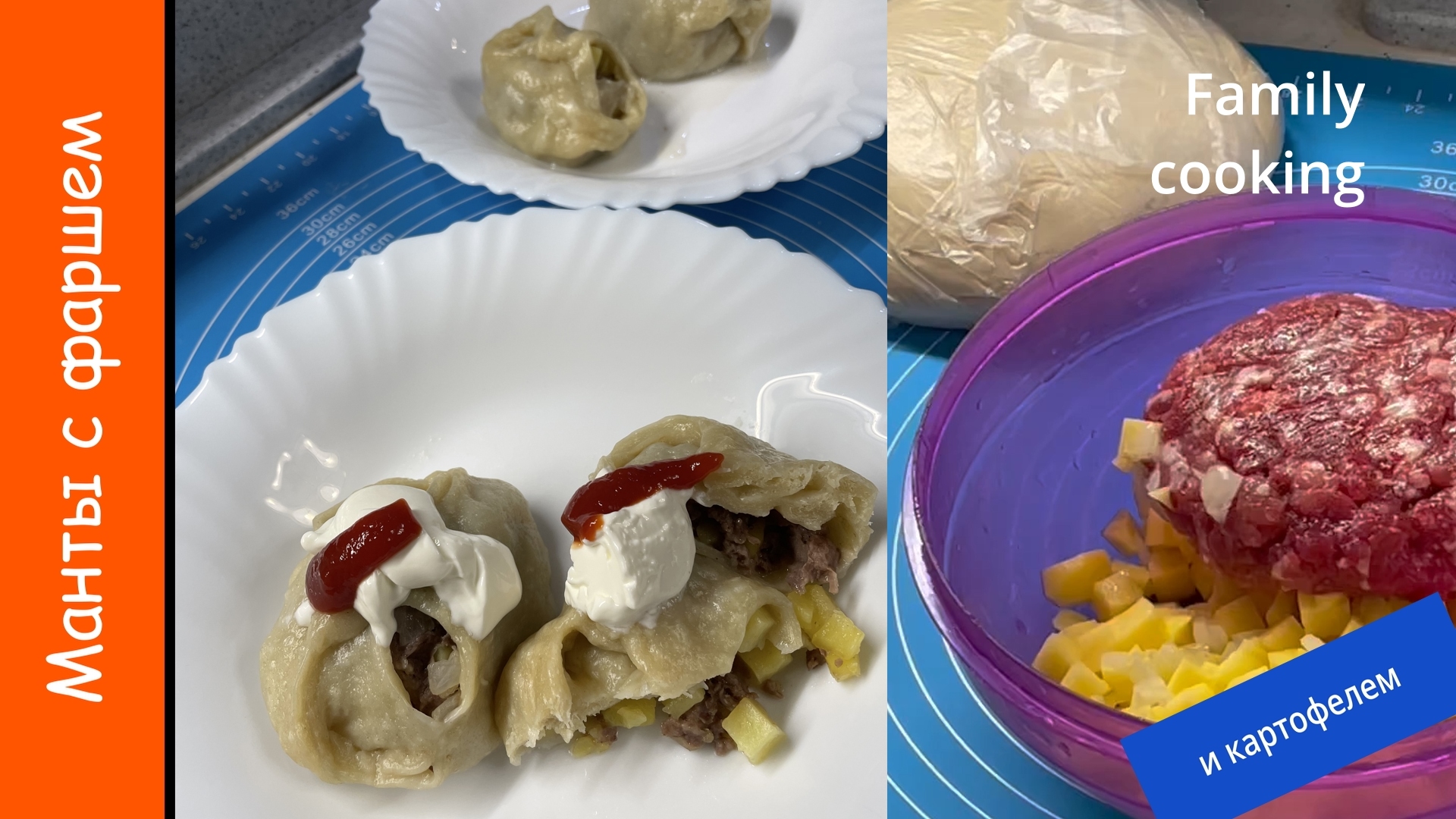 Смотрите все рецепты автора на сайте https://profamilycooking.ru Больше рецептов, удобный поиск и возможность сравнения рецептов на сайте https://piroved.ru Манты на пару с фаршем и картофелем - сытный вкусный и полезный ужин 00:00 Манты с фаршем и картофелем 00:08 Ингредиенты 00:18 2/3 части муки просеиваем, добавляем соль, посередине делаем углубление 00:42 К муке добавляем яйцо 01:00 Частями вливаем воду и перемешиваем 01:18 Добавляем оставшуюся муку и замешиваем тесто в течение 10-15 мин, пока оно не станет гладким и начнет легко отставать от рук 02:15 Тесто убираем на 1 час в целлофановый пакет и оставляем при комнатной температуре 02:24 Для начинки лук и картошку моем и чистим 02:34 Лук натираем на терке или мелко нарезаем, картошку нарезаем кубиками 02:44 Добавляем к картошке с луком фарш и соль и хорошо перемешиваем 03:04 Уровни пароварки хорошо смазываем сливочным или растительным маслом 03:22 Тесто делим на три части, пока работаем с одной частью - остальные убираем в пакет чтобы не заветрелись 03:40 Тесто раскатываем в тонкий пласт размером примерно 30 на 30 см и делим на примерно равные квадраты или прямоугольники. Из одной части теста получается 6-9 шт. 04:12 На середину каждого кусочка выкладываем по 1 ст.л. с горкой начинки 04:29 Лепим манты 05:10 Уровни пароварки ставим на емкость с кипящей водой и готовим 40 минут на среднем нагреве 05:23 Приятного аппетита! Время подготовки ~1,5 часа Время приготовления ~45 мин Число порций: ~25 шт Калории: 187.4 ккал. Белки: 7.1 гр. Жиры: 6.4 гр. Углеводы: 25.5 гр. Ингредиенты Тесто: 1 яйцо 250 мл теплой воды 500 г муки 1 ч.л. соли Начинка: 5 шт картофель средний 500 гр фарша (лучше брать свинину и говядину 1:1) 1 крупная луковица 1,5 ч.л. соли #familycooking Песня из видео: MBB — Ibiza Взято с канала: MBB Лицензия: не предоставлена Ссылка: youtu.be/AJaRokIfoto Проверено на сайте: https://eproves.com