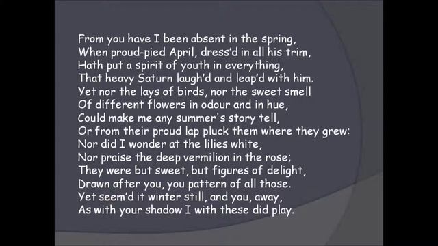 The Sonnet 98 - classical poem by William Shakespeare. 'Shadows Play' - a song composed and performed by Renny Winkler.