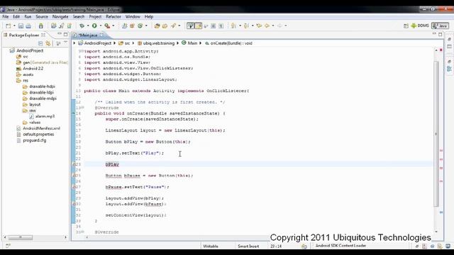 This video shows how to implement a code for playing audio files on an android device