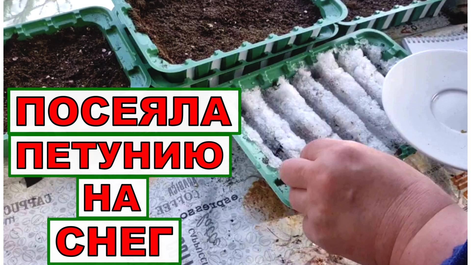 Посев ампельной петунии. Мой способ - на снег и в небольшие контейнеры.