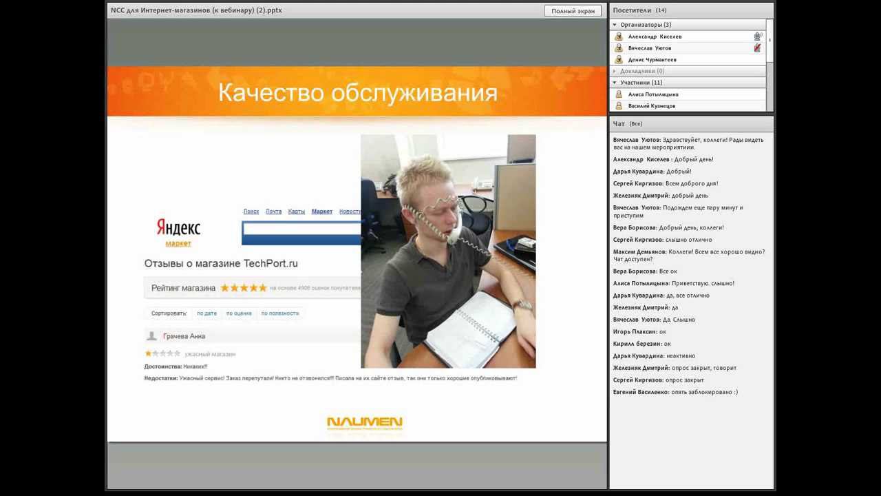 Компания Naumen предлагает вашему вниманию вебинар "Через call-центр - к росту Интернет-продаж" Дата проведения: 15 августа 2013 г. По мере роста бизнеса у интернет-магазина возникает потребность в надежной платформе, обеспечивающей стабильную работу call-центра. Учитывая затраты на рекламу, каждый пропущенный звонок оборачивается прямыми финансовыми потерями. Как оптимизировать распределение звонков? Как обеспечить централизованную обработку входящих обращений по всем используемым каналам связи? Как контролировать качество работы операторов? На эти вопросы мы ответим на вебинаре. Вебинар будет интересен владельцам и руководству интернет-магазинов, а также техническим специалистам, отвечающим за автоматизацию приема и обработки входящих обращений. На вебинаре показаны пути оптимизации бизнес-процессов интернет-торговли посредством платформы Naumen Contact Center, которая уже используется рядом крупных интернет-магазинов. В 2012 г. продукт получил награду «Хрустальная гарнитура» как лучшее решение для call-центров. Платформа обеспечивает прием и обработку обращений по большинству имеющихся каналов связи: телефон, e-mail, факс, SMS, веб-сайт, Skype. Вся информация, необходимая для работы оператора (статистика вызовов, заявки с сайта, данные системы управления заказами), отображается в одном рабочем окне. При оформлении заказа его карточка связывается с телефонным номером клиента, что облегчает его идентификацию при повторном обращении.