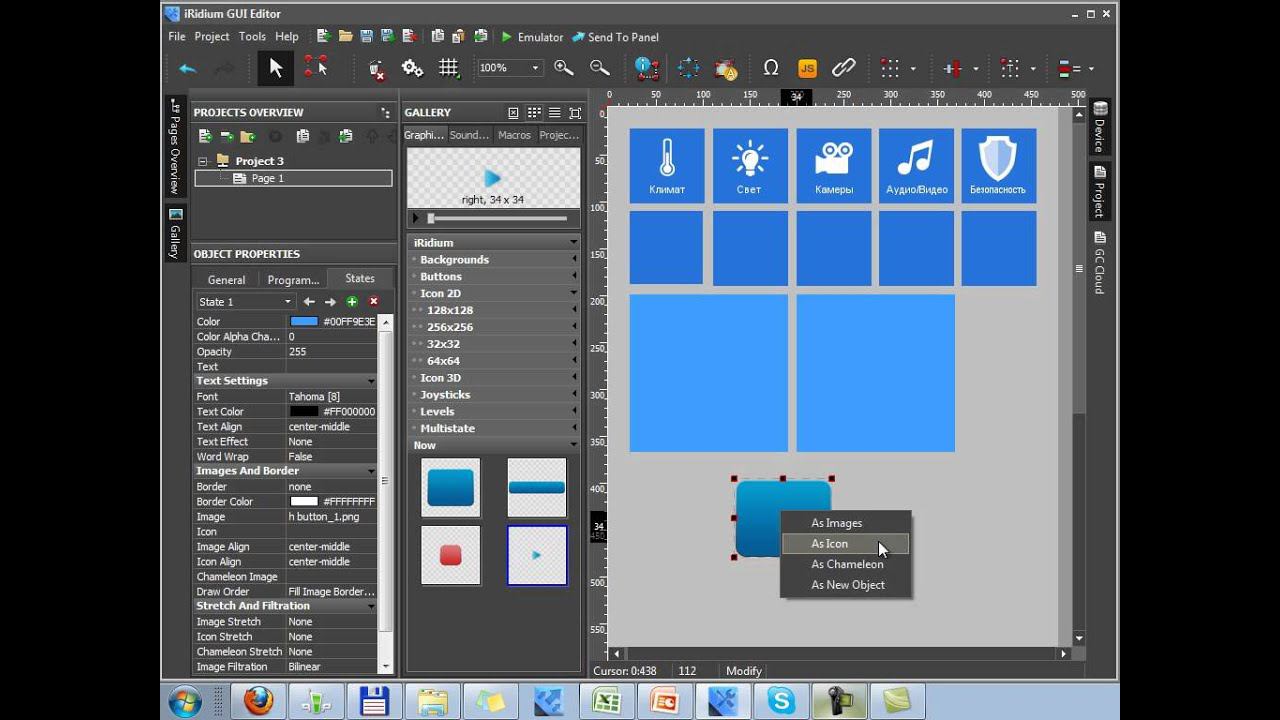 Graphic part set up of a project: Gallery in iRidium GUI Editor