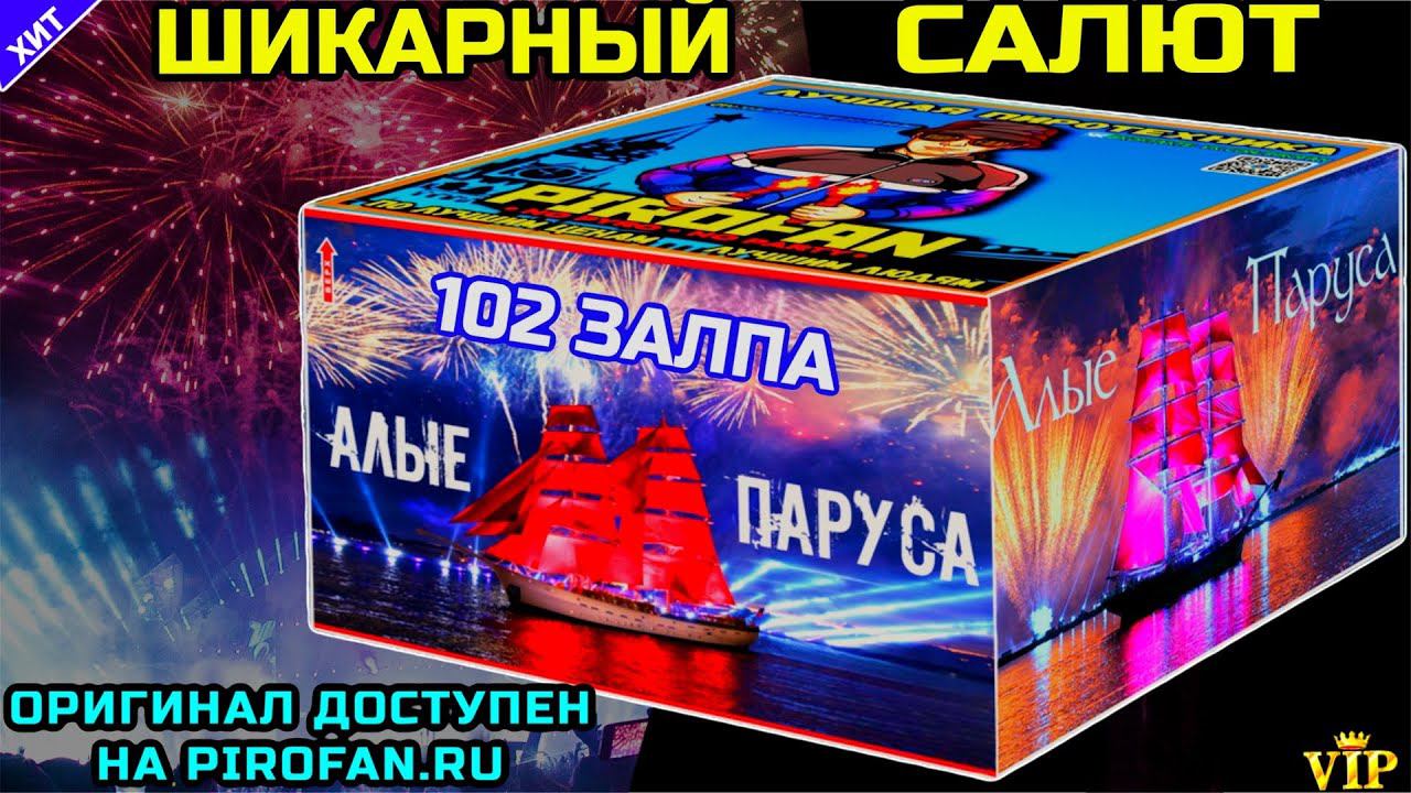 HTTPS://PIROFAN.RU - скидки в нашем официальный магазине ТКВ922/1 Салют 102 шикарных залпа, фейерверк Алые Паруса (веерный) - Калибр: 20мм = 0,8" дюйма - Время действия: 65 секунд - Высота выстрела: 25 метров - Есть сертификат и гарантия от Пирофан