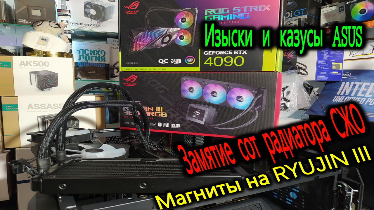 Изыски и казусы ASUS. Магнитное поключение на RYUJIN III. Замятие винтом сот радиатора СЖО ASUS ROG