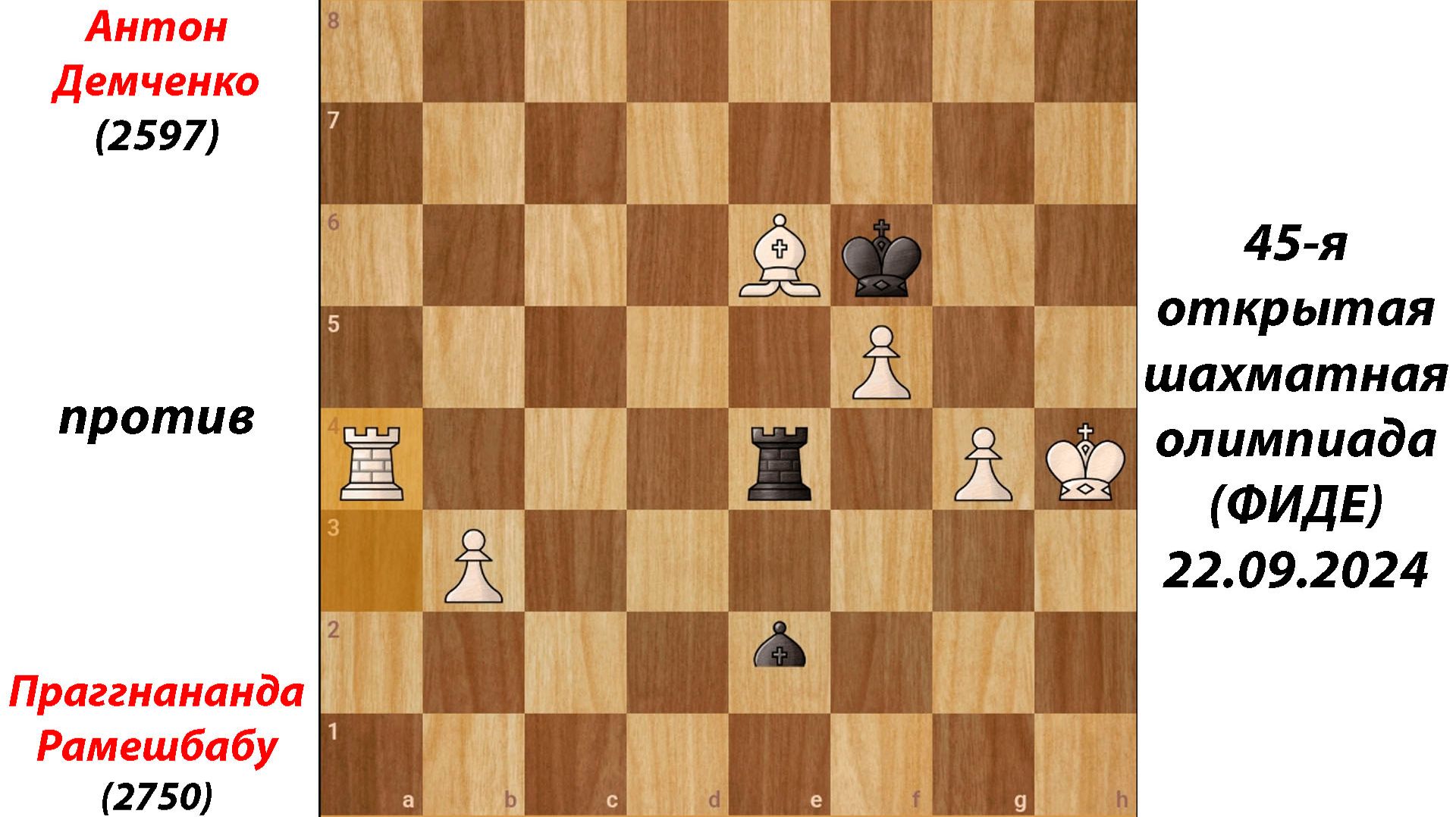 Антон Демченко против Праггнананда Рамешбабу - 45-я открытая шахматная олимпиада ФИДЕ, 22.09.2024