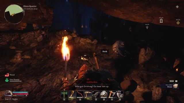 Убил группу гоблинолюдов и забрал добычу из их сундука. Нашел и скопал жилу угля. Обыскал два заброшенных дома. Нашел и скопал 2 жилы железной руды. Перебил гоблинолюдов в центре зала и забрал их сокровища, а также добычу из двух сундуков. Скопал ещё одну жилу железной руды.