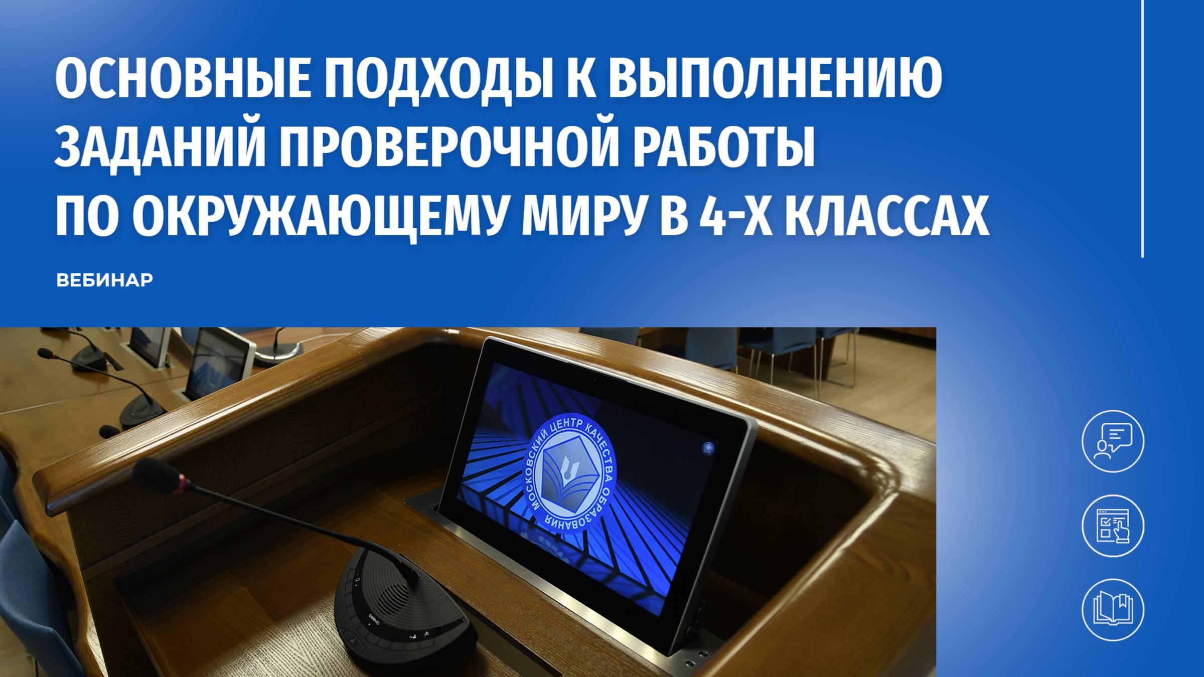 Приглашаем посмотреть видеоматериал, посвященный основным подходам к выполнению заданий проверочной работы по окружающему миру в 4-х классах общеобразовательных организаций города Москвы. В видеоролике эксперт Московского центра качества образования Татьяна Александровна Клепикова знакомит слушателей с особенностями предстоящей проверочной работы и предлагает практические рекомендации, которые позволят школьникам наиболее успешно выполнить работу. Видео будет интересно заместителям директоров образовательных учреждений по управлению качеством образования, учителям, преподающим «Окружающий мир» в 4-х классах, и всем желающим.