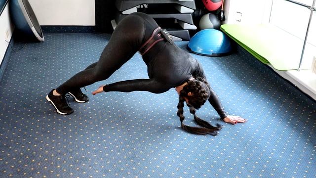 Упражнение на силу, выносливость и растяжение мышц. Упражнение для мышц стабилизаторов и для растяжки задней поверхности бедра.