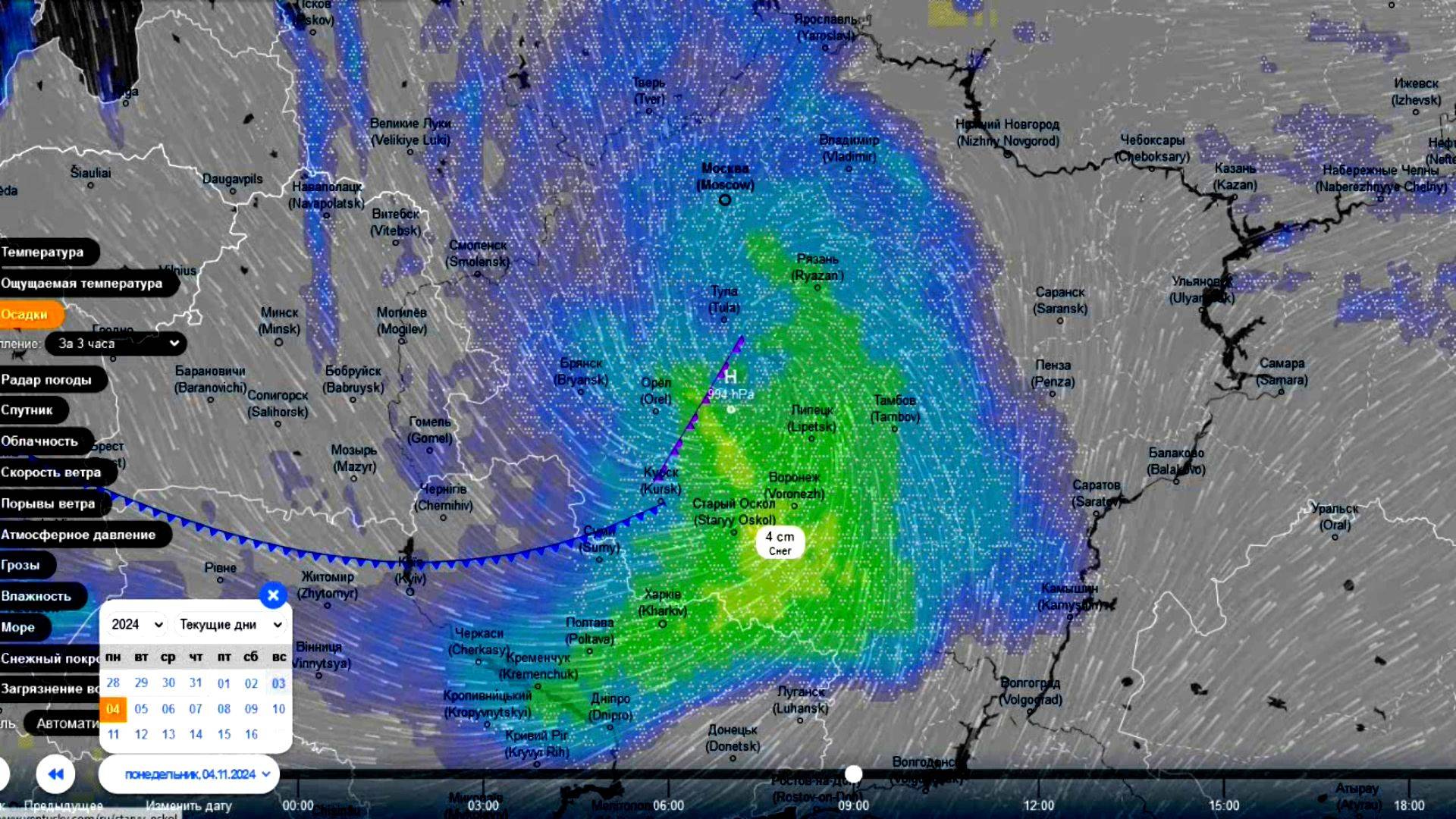4 ноября ныряющий циклон испортит погоду на западе и юге ЕТР. Прогноз погоды