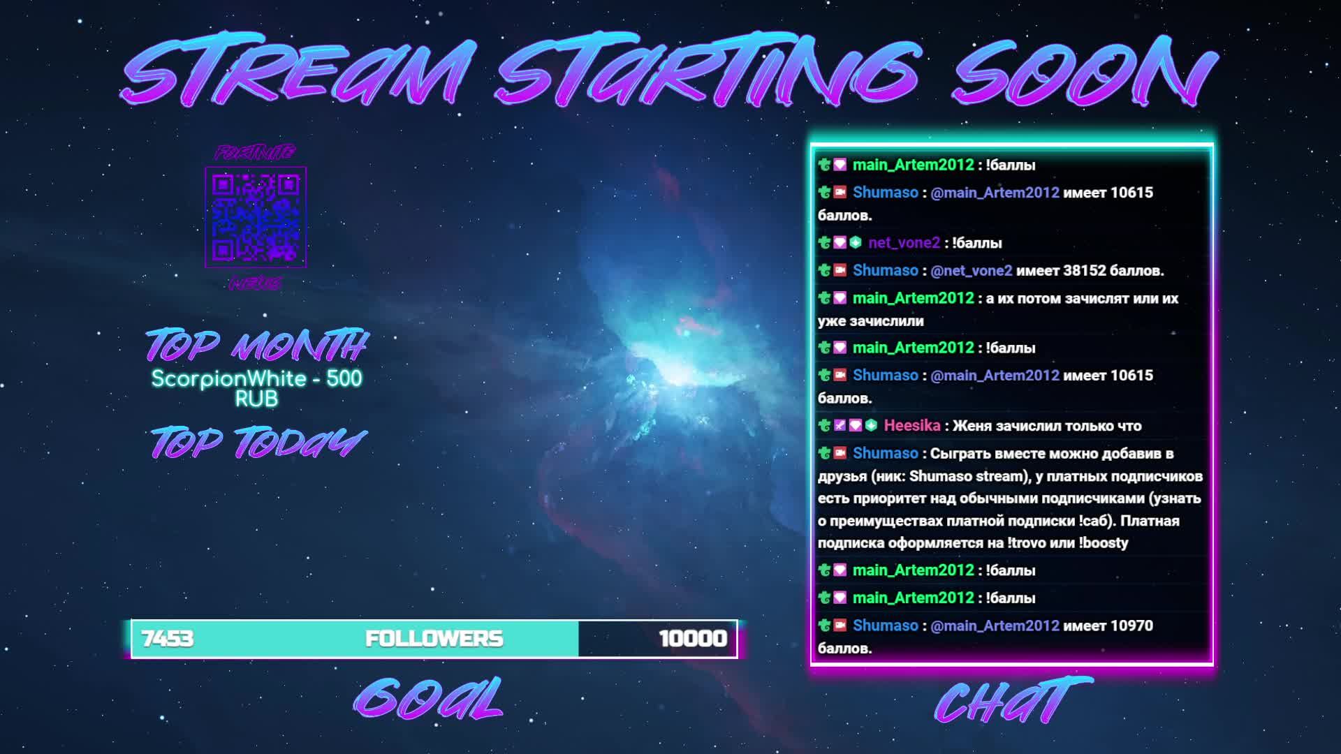 Здравствуй, дорогой зритель, меня зовут Евгений! Спасибо, что заглянул на мой канал. Стримы проводятся каждый день, буду рад любой активности! Играем в Fortnite в режиме «Нулевая Высота». Огромное спасибо за вашу поддержку, она очень мотивирует и помогает делать то, что мне действительно по душе. Telegram: https://t.me/shumaso_clan Fortnite новости: https://t.me/allbefortnite Trovo: https://trovo.live/s/Shumaso Twitch: https://www.twitch.tv/shumaso Youtube: https://www.youtube.com/@shumaso VK Play: https://vkplay.live/shumaso Поддержка: https://www.donationalerts.com/r/shumaso