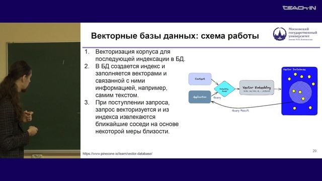 BERT, Sentence BERT, векторные БД, RAG Тихомиров Михаил Михайлович 00:16 BERT (2018) 14:27 Sentence BERT 23:34 LaBSE 31:17 E5 41:53 Векторные базы данных 57:25 HNSW (Hierarchical Navigable Small World) 01:02:21 RAG 01:24:57 Langchain Ссылка на плейлист Teach-In: https://teach-in.ru/course/fundamentals-of-training-llm-tihomirov Ссылка на плейлист YouTube: https://www.youtube.com/playlist?list=PLcsjsqLLSfNAz_J4tGrLSI--CzdYyhnj3 Ссылка на плейлист VK: https://vkvideo.ru/playlist/-176441665_866 Ссылка на плейлист RuTube: https://rutube.ru/plst/1513656 #teach_in #МГУ #MSU #Artificial_intelligence #искусственный_интеллект #ИИ #AI #лекция #lecture #Тихомиров #Tikhomirov #LLM #языковое_моделирование #language_modeling #BERT #Sentence_BERT #LaBSE #E5 #векторные_базы_данных #vector_databases #HNSW #RAG #Langchain
