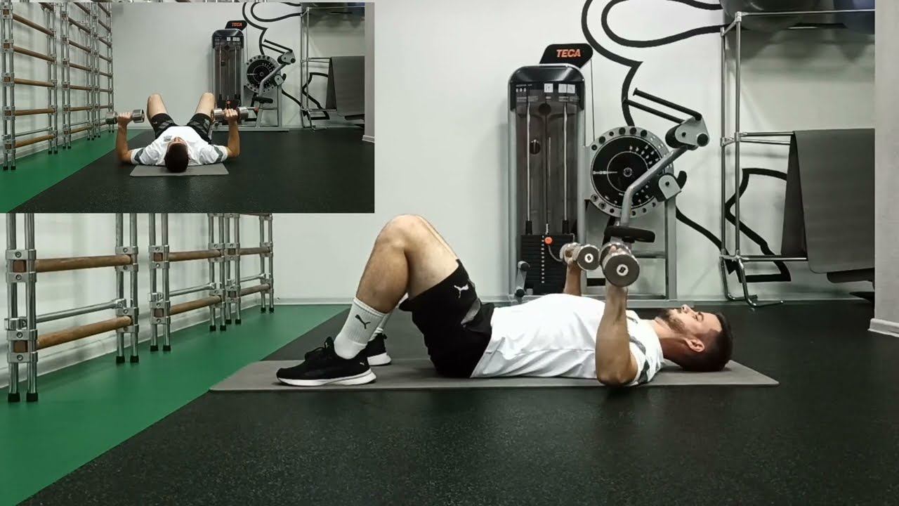 Жим гантелей лежа на гимнастическом коврике