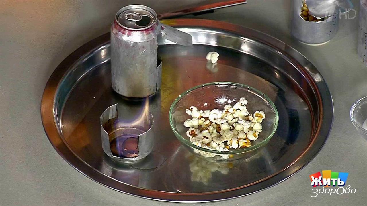 Попкорн – лакомство, которое любят и дети, и взрослые. Если вдруг вы с семьей отправились в поход, и у вас с собой есть зерна кукурузы и алюминиевая банка из-под газировки, можете смело обещать всем оригинальный десерт после ужина.