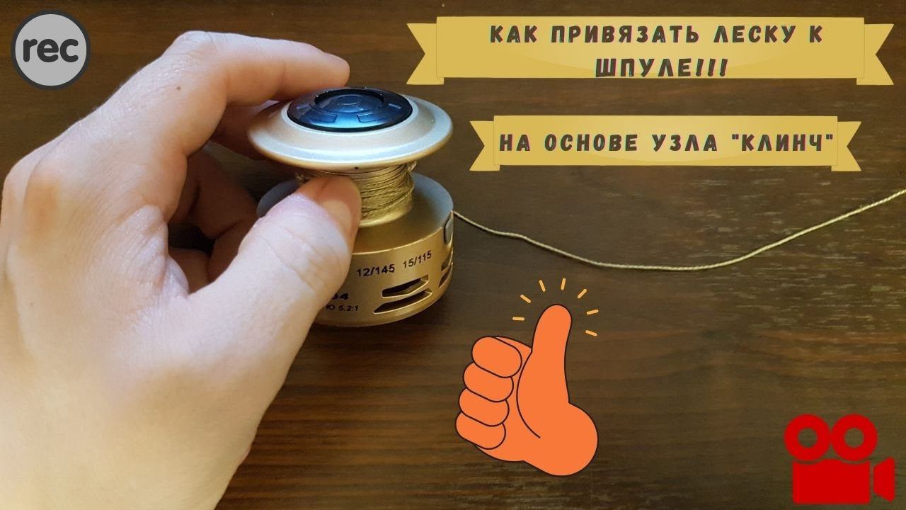Как привязать леску к шпуле катушки ! (основа узел Клинч)