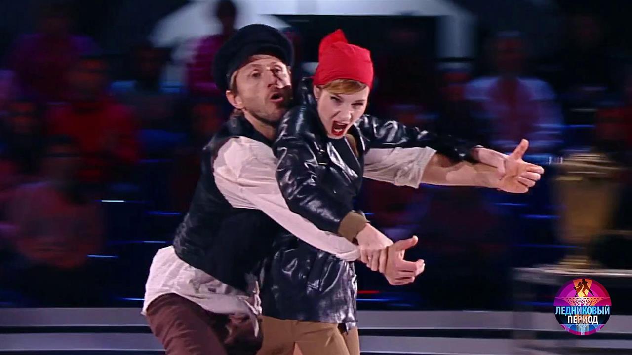 На льду – актриса Мария Луговая и многократный призер Европы и мира Повилас Ванагас. Они танцуют под песню «У самовара» в исполнении Леонида Утесова.