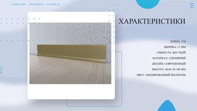 Официальный магазин завода Производителя: https://alyuminievyjplintus.ru/ Купить Плинтус алюминиевый Л-образный АНОДИРОВАННЫЙ ШАМПАНЬ: https://alyuminievyjplintus.ru/item/plintus-aljuminievij-l-obraznij-anodirovannij-shampan-100h11h3000-mm Л-образный плинтус из алюминия высотой 60 мм. находит отличное применение при отделке помещений в стиле Premium, Hi-Tech или Минимализм. Так же довольно часто используется в интерьерах автосалонов и бизнес-центров. Плинтус имеет привлекательный дизайн, отличное качество, а в совокупности более привлекательной ценой, по сравнению и зарубежными аналогами. Возможна окраска в различные цвета по RAL. Для плинтусов есть комплектующие из ПВХ и из алюминия. В ролике вы увидите: ▶ Плинтус алюминиевый Л-образный АНОДИРОВАННЫЙ ШАМПАНЬ ▶ Стоимость, скидки и характеристики Тайминг: 00:00 Вступление 00:06 Описание и цена 00:14 Характеристики 00:20 Дополнительная информация (Доставка, Оплата, Скидки, Обмен, Возврат) 00:30 Магазин завода производителя Характеристики: ДЛИНА: 3 М ШИРИНА: 11 ММ ГИБКОСТЬ: ЖЕСТКИЙ МАТЕРИАЛ: АЛЮМИНИЙ ДИЗАЙН: СОВРЕМЕННЫЙ ВЫСОТА: 40,60, 80 100 ММ ЦВЕТ: АНОДИРОВАННЫЙ ШАМПАНЬ Интересные ролики про плинтус: Плинтус алюминиевый 80х10 черный матовый https://youtu.be/oHVCEHSvDDU?si=-nQi4ewE5WfC9qJC Плинтус алюминиевый 60х11 светлая бронза https://youtu.be/ihlQM3PwBrM?si=VpfARSQvz4sh0oqf Плинтус алюминиевый 60х11 светлая бронза https://youtu.be/rhH4Uc98YVw?si=99Vh79yKL0WjI38Z Подписывайтесь на наш канал, следите за новыми полезными роликами, пишите комментарии и приятного просмотра! Сайт: https://alyuminievyjplintus.ru/ #плинтус #плинтусполоса #алюминиевыйплинтус #напольныйплинтус #плинтуслобразный