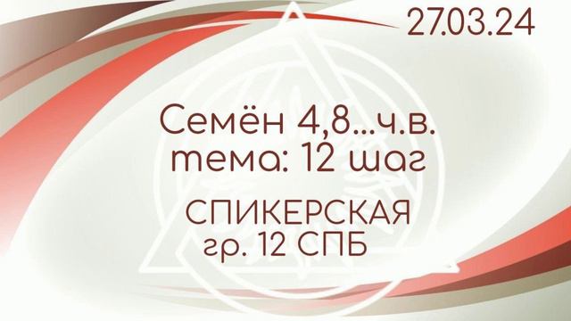27.03.24г. Спикерская ДАА на группе "12" г. Санкт-Петербург. Семён 4,8...ч.в. тема: 12 шаг