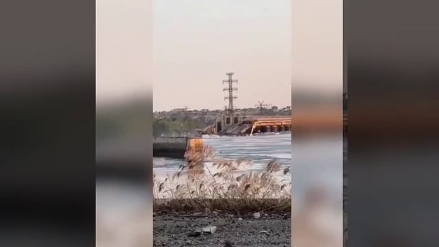 Ещё одно видео из сети, предположительно, снятое рядом с Каховской ГЭС