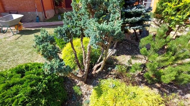 Стригу хвойные растения в компактной группе. Показываю этапы работы.