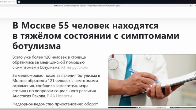 В Москве 55 человек находятся в тяжёлом состоянии с симптомами ботулизма