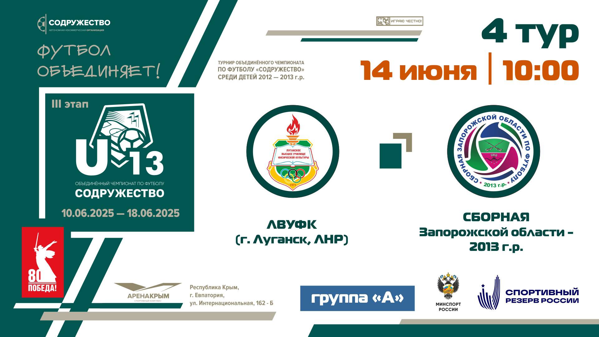4 ТУР [Группа А] | ЛВУФК (г. Луганск, ЛНР) - Сборная Запорожской области 2013 г.р.