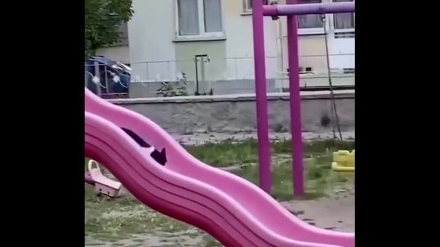 Кот катается на горке