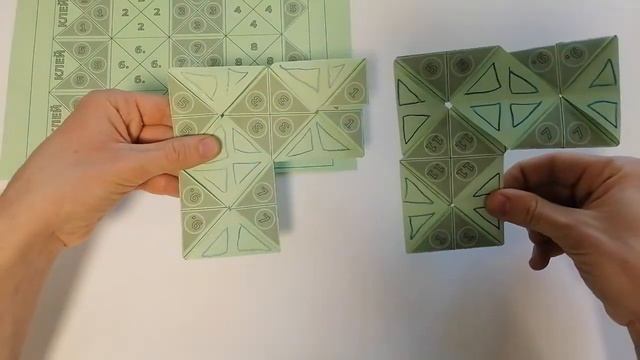 Головоломка "Флексотримино" имеет три основных положения. Нужно придумать, как из одного положения перейти в другое. Также головоломка имеет две стороны и нужно придумать, как её вывернуть наизнанку. В этом видео показано, как собрать головоломку, а также как её решить. "Квантик" №5 за 2022 год Автор Сергей Полозков