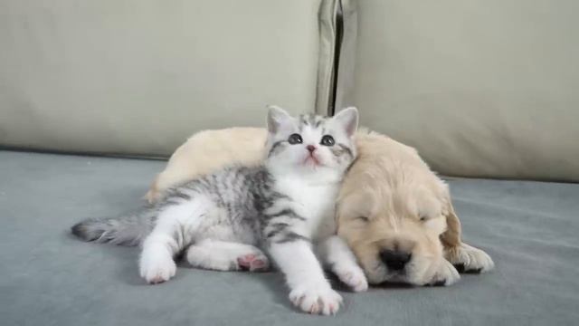 Что делает котенок, когда находит спящего щенка золотистого ретривера - 2025 год