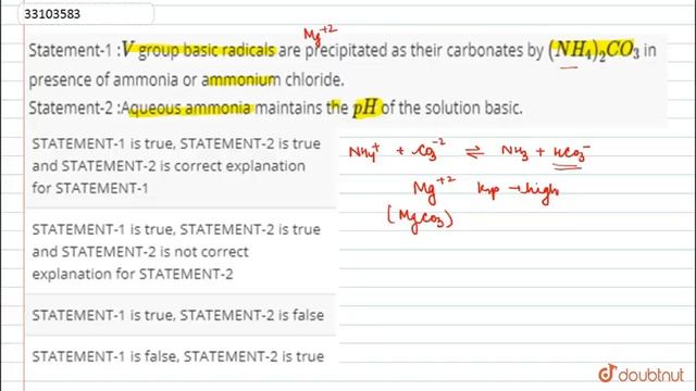 Statement-1 :`V` group basic radicals are precipitated as their carbonates by `(NH_(4))_(2)CO