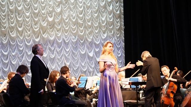 Елена Терентьева и Максим Сажин исполняют Застольную из оперы «Травиата». Дирижёр — Виктор Луценко