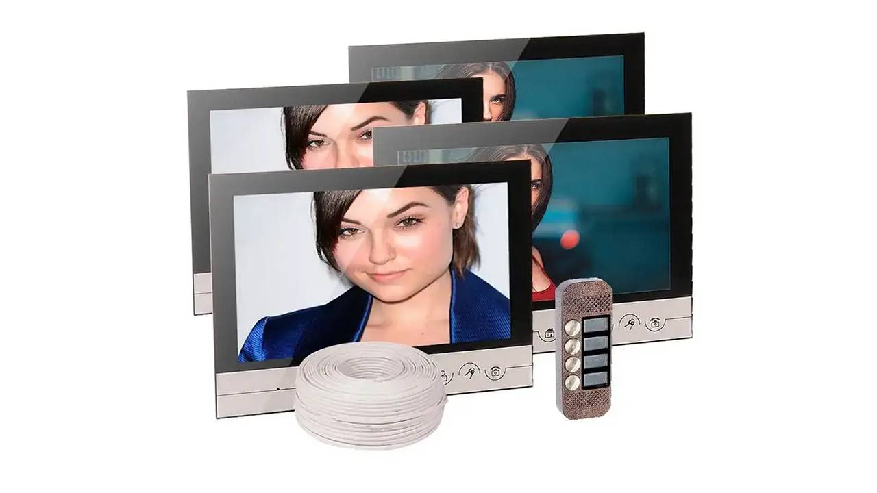 Вашему вниманию представлен полный комплект для контроля доступа посетителей на четыре квартиры, который состоит из четырех мониторов и уличной антивандальной вызывной панели - https://recdvr.ru/product/komplekt-domofon-na-4-kvartiry-4-monitora-v90rm-i-vyzyvnaja-panel-jsb-v084/ Каждый монитор V90RM имеет диагональ 9 дюймов,12 мелодий звонков на ваш выбор и поддерживает карты памяти формата microSD с максимальным объёмом 32 Гб. На карту памяти можно записывать видео в разрешении 720x280 пикселей и фото в разрешении 720x280 пикселей всех посетителей, которые попадают в поле зрения объектива, встроенного в вызывную панель. На вызывной панели JSB-V084 имеется четыре кнопки, которые соответствуют четырём разным квартирам. Угол обзора встроенной камеры в вызывную панель 70 градусов, разрешение камеры 700 ТВЛ.