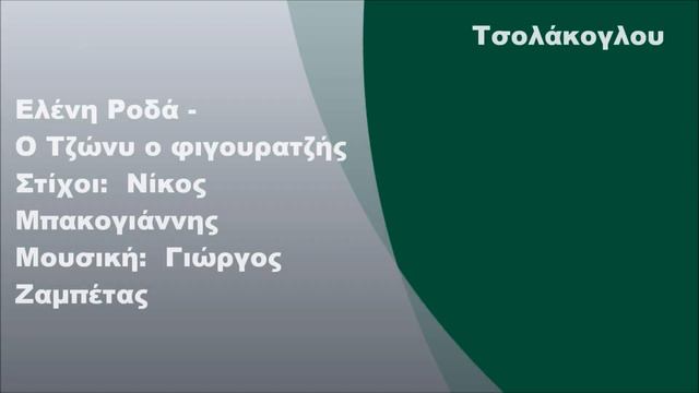 Ελένη Ροδά - Ο Τζώνυ ο φιγουρατζής (1975) (FULL HD) Στίχοι: Νίκος Μπακογιάννης Μουσική: Γιώργος Ζαμπέτας Για χρηματοδότηση-υποστήριξη του καναλιού επικοινωνήστε στο george23820@gmail.com ή info@tsolakoglou.gr Υπεύθυνος καναλιού: Τσολάκογλου Γεώργιος Менаџер на канали: Цолакоглу Георги Facebook: http://www.facebook.com/George23820 Twitter: http://www.twitter.com/George23820 TikTok: http://www.tiktok.com/@tsolakoglougr Website: http://george23820.blogspot.gr http://tsolakoglou.gr Στίχοι: Έφυγε Γιάννης μιαν αυγή για να τα 'κονομήσει να πάει στην Αμερική και Τζώνης να γυρίσει Πέρασαν χρόνια και καιροί δολάρια ματσώνει και σ' όλη την Αμερική μιλάνε για το Τζώνυ Χάου ντου γιου ντου χάου ντου γιου ντου του λένε όλοι από παντού κι αυτός το 'χει καμάρι Κι όπου τον δεις κι όπου τον δεις ο Τζώνυ ο φιγουρατζής δολάρια μοστράρει Η ξενιτιά είναι σκληρή και δεν την υποφέρει κι έτσι μια μέρα ξαφνικά γυρνά στο Περιστέρι Με την παρέα την παλιά τα πίνει και τα τρώει και παραμύθι τους πουλά πως ήταν κάου μπόι