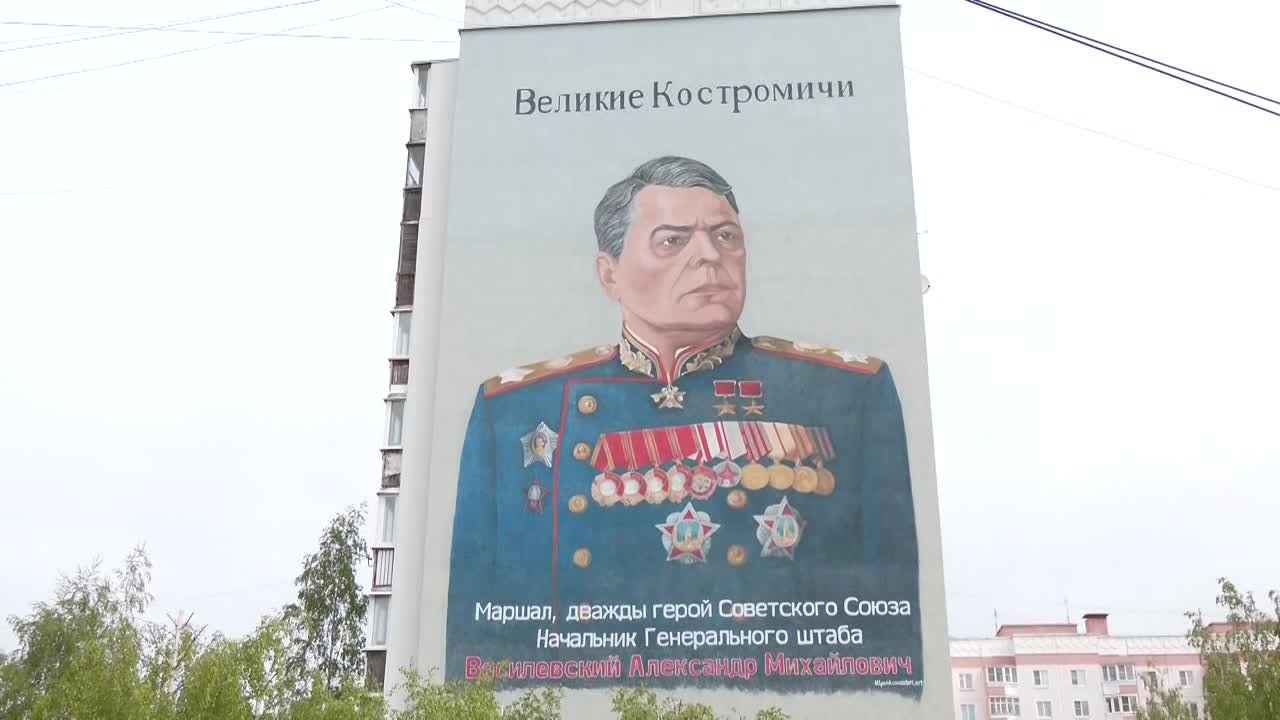 Сегодня в Костроме торжественно открыли мурал с изображением Александра Василевского