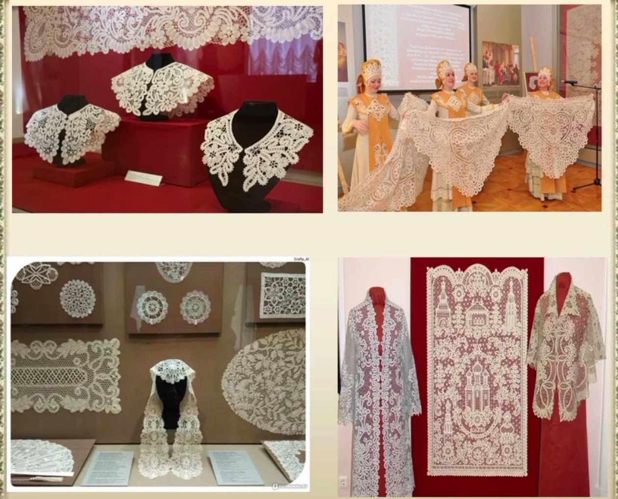 В рамках международной культурно-образовательной акции «Ночь музеев – 2022» Заринская сельская библиотека подготовила виртуальную экскурсию «По музеям народных промыслов России». Посмотрев видеоролик, вы узнаете, когда появились первые вологодские и елецкие кружева? Где изготавливают каргопольские и филимоновские игрушки? Чем славится музей – усадьба бересты и льна. И многое другое! Главный библиотекарь Заринской сельской библиотеки-филиала № 14 МБУК «Анапская ЦБС» Кисьян А.А.