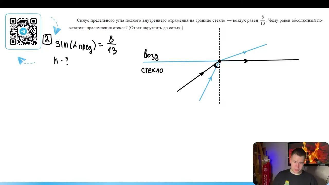 Синус предельного угла полного внутреннего отражения на границе стекло — воздух равен 8/13 - №28385