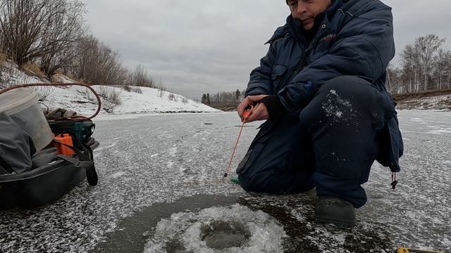 Ехал за щукой, где сезон жидкой воды закрыл. Но не тут-то было. Ни белой рыбы нет на яме, никакой-то другой. Но открытие состоялось. Лунку пробурил, рыбку поймал!!!!!