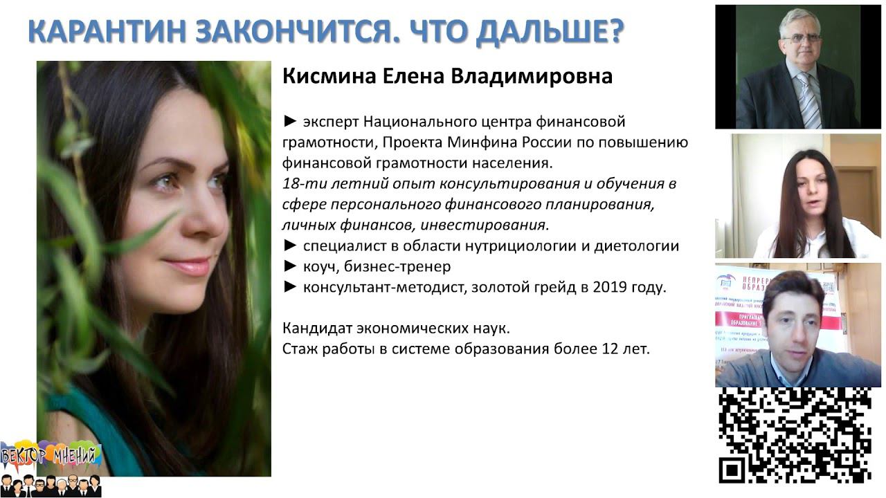 О том, как сохранить личные финансы и здоровье во вре6мена карантинов и эпидемий рассказывает Кисмина Елена Владимировна, эксперт Национального центра финансовой грамотности, Проекта Минфина России по повышению финансовой грамотности населения, эксперт с 18-ти летним опытом консультирования и обучения в сфере персонального финансового планирования, личных финансов, инвестирования.