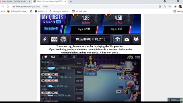 WSOP...REVIEW OF World Series of Poker Internet /Ipad/Google Play Game How to get free chips to play WSOP...just like the real WSOP tournament... Here you can play against people from around the world LIVE... See whether you have the poker face or ability to bluff. Whether you can win in competition in real time... play the Los Angeles competition or the in Dubai Billion chips play.. Can you play chips or all in and win against competiton? very interesting and motivating games.. or frustrating if your cards and chips are down.. Play live against players...around the world...and progress from level Jack to Queen to King to Ace to MasterClass.. not easy but interesting enough...and you play without money... Try this...and give your comments.... This is a REVIEW BY ANDY CHAN LIFESTYLE...