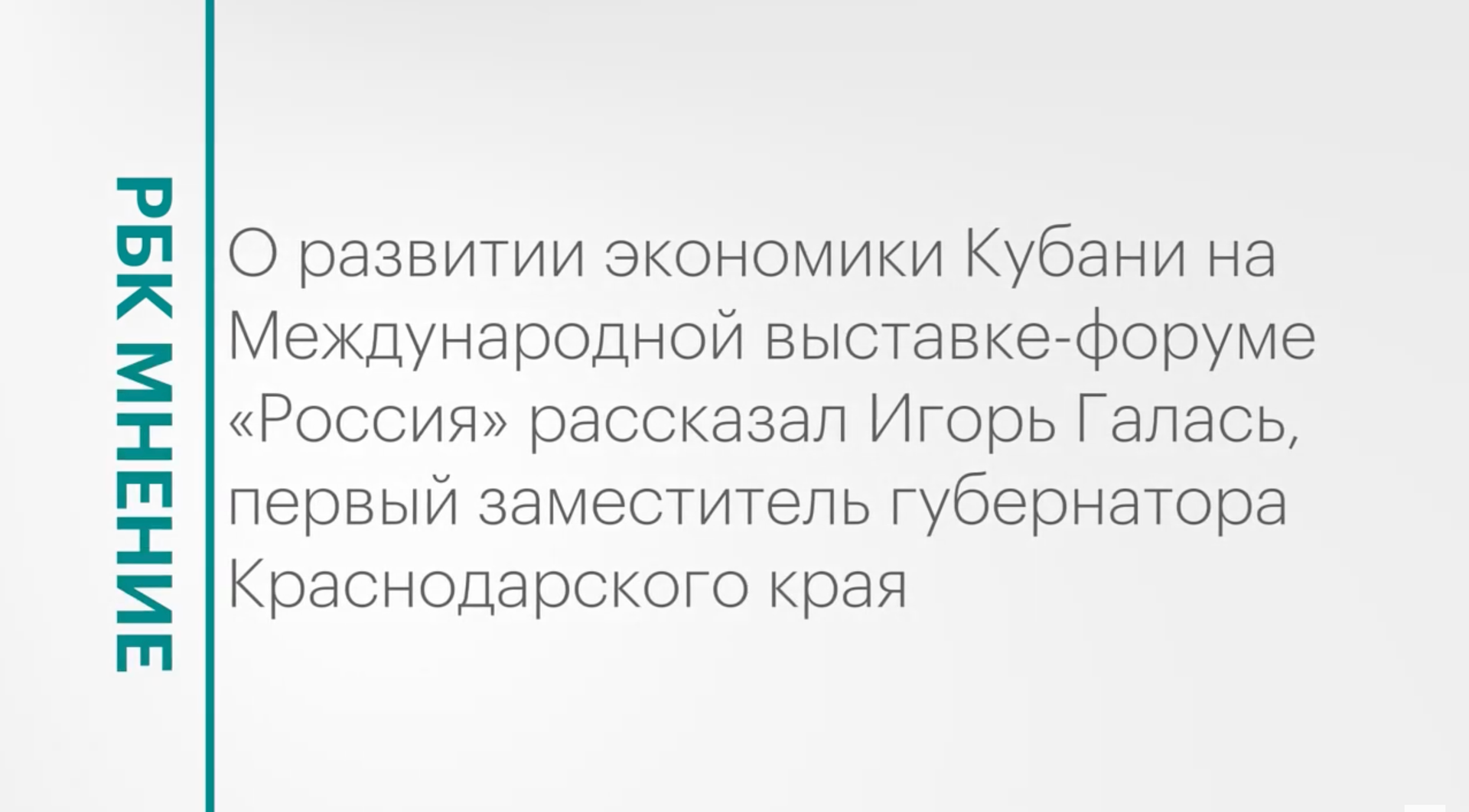 О развитии экономики Кубани на Международной выставке-форуме «Россия» рассказал Игорь Галась, первый заместитель губернатора Краснодарского края. Подписывайтесь на нас в социальных сетях: ВКонтакте: https://vk.com/rbcyug Telegram: https://t.me/rbc_krasnodar, https://t.me/rbcrostov, https://t.me/rbc_kavkaz Подпишитесь на канал РБК Юг, чтобы смотреть новые выпуски первыми!