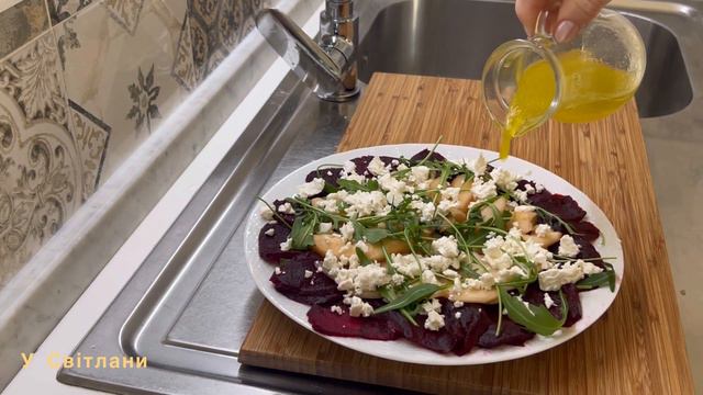 Пропоную Вашій увазі два цікаві рецепти салатів з буряком.Поєднання солоного та солодкого смаків роблять ці салати оригінальними та смачними,а головне корисними.Готуються легко та швидко.Надіюсь,що Вам сподобаються. ………………………………. РЕЦЕПТ1 буряк 150 гр груша 150 гр рукола 30 гр солоний сир ( бринза) 80гр Для заправки сік з 1 лимона мед 1/2 ч.л. олія 50 мл сіль,перець за смаком …………………………………. РЕЦЕПТ2 буряк 150 гр чорнослив 10 шт твердий сир 80 гр горіхи 60 гр часник2 гр майонез 2 ст.л ..................................................... RECIPE1 beet 150gr pears 150gr arugula 30gr feta 80gr FOR VINAIGRETTE SAUCE juice of one lemon honey 1/2 teaspoon salt,pepper to taste ...................................................... RECIPE2 beet 150gr prunes 10pc cheese 80gr nuts 60gr garlic 2gr mayonnaise 2tablespoon ........................................................... #салатизбуряка#салатзбурякатачорнослива#салатзбринзою#салатзруколою#
